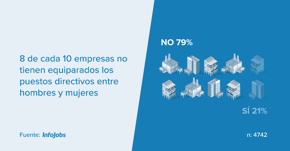 Según los trabajadores, 8 de cada 10 empresas todavía no tienen equiparados los puestos directivos entre hombres y mujeres, y 4 de cada 10 tiene menos de un 10% de mujeres en dichas posiciones.