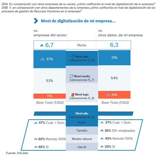 Las empresas se ven así mismas con un nivel de digitalización medio-alto, pero la percepción baja en materia de RR. HH.