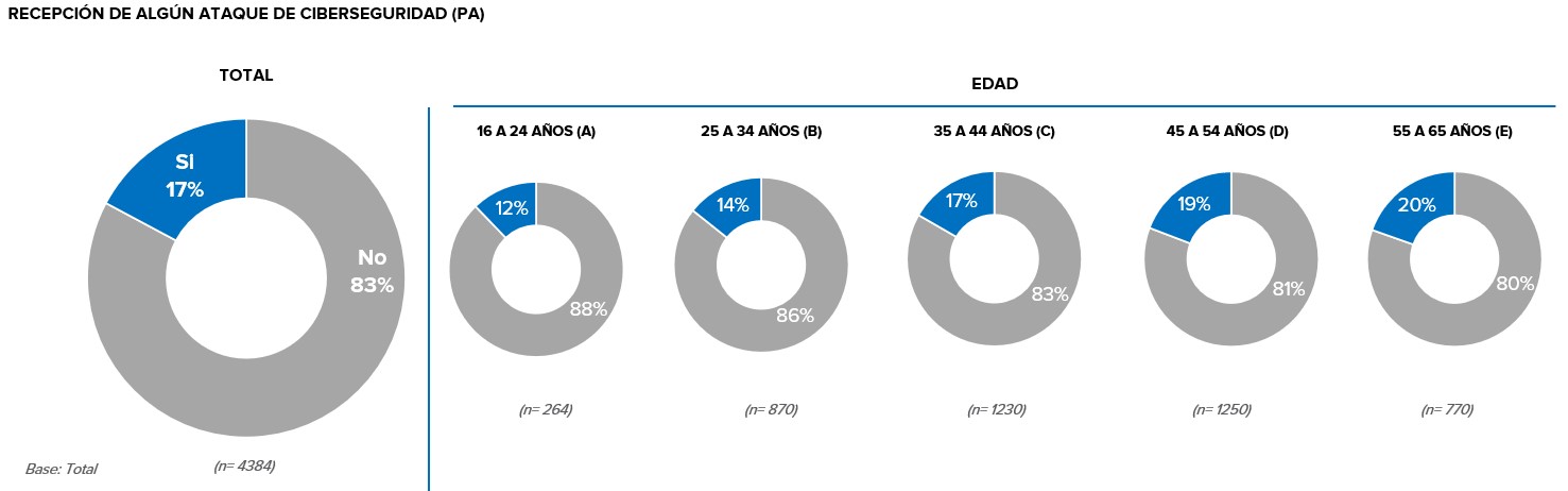 Uno de los datos más significativos de este informe es el que compara la postura de empresas y trabajadores frente al hecho de haber sufrido algún ciberataque durante el último año. Así, desde la perspectiva de las compañías, un 44% declara haber sido víctima de algún ataque a sus sistemas informáticos; sin embargo, sólo el 17% de los profesionales es consciente de haber recibido algún ciberataque. Respecto a este último punto, se observa que los trabajadores de entre 55 y 65 años son los que en mayor proporción afirman haber sufrido un ciberataque (20%), mientras que los jóvenes de 16 a 24 años son los que menos (12%).