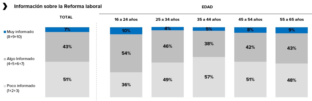 - El 51% de la población activa reconoce estar poco informada acerca del contenido de la reforma laboral