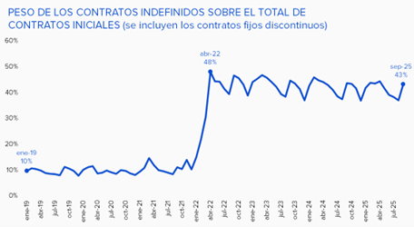 El 43 % de los contratos que se firmaron en septiembre fueron indefinidos o de carácter fijo discontinuo