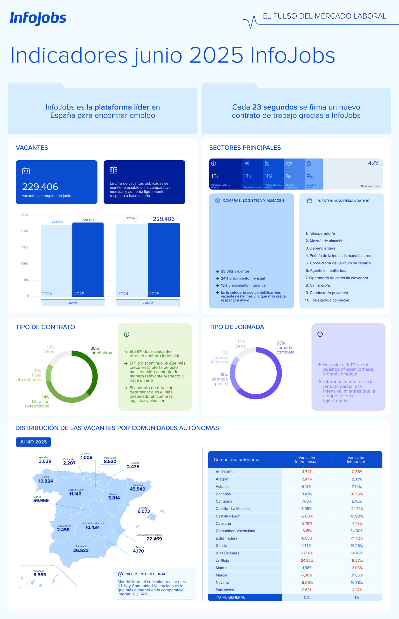 Consulta los indicadores laborales de InfoJobs de junio 2025 y descubre cómo evoluciona el mercado de trabajo en España