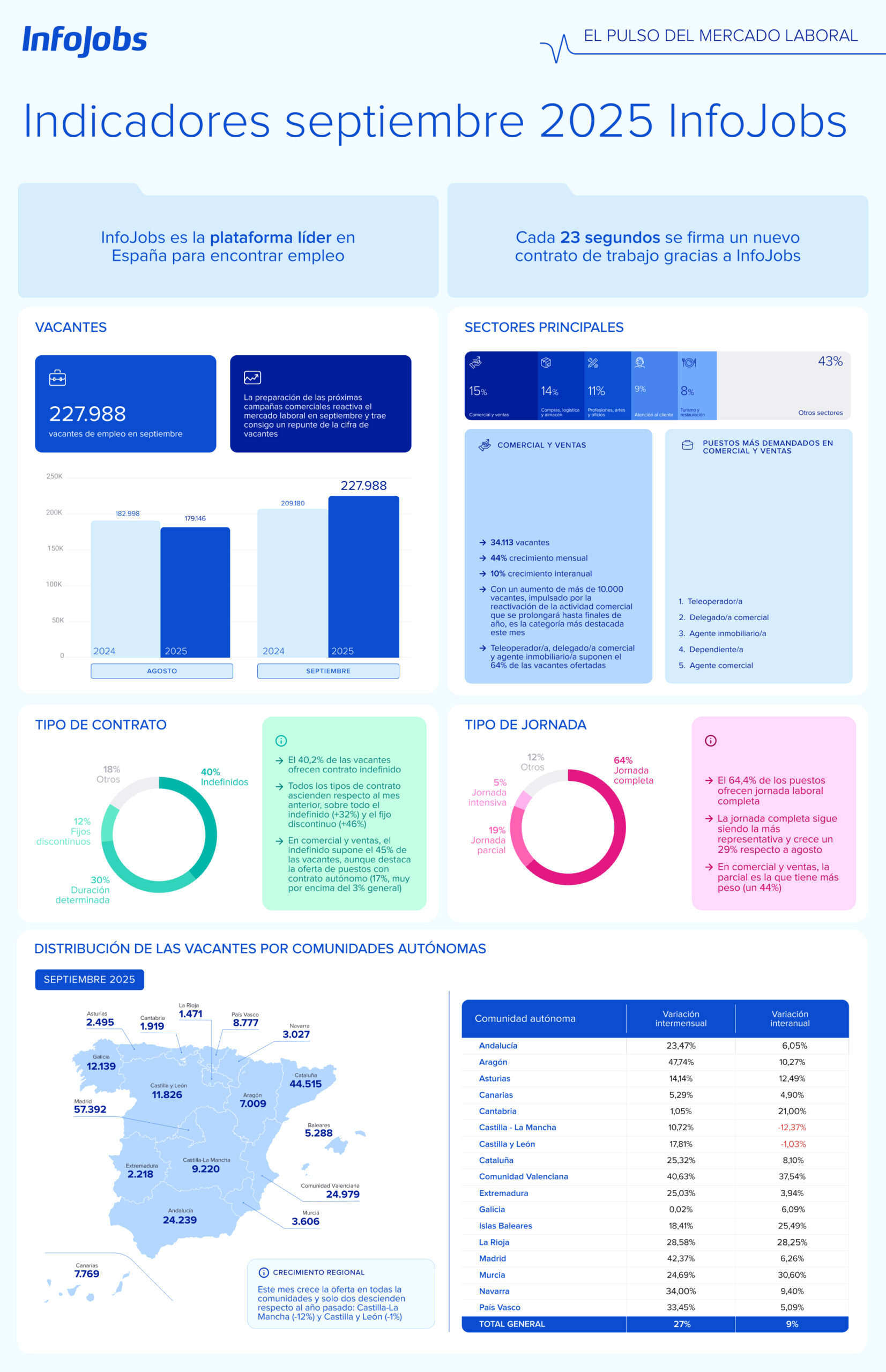 Consulta los indicadores laborales de InfoJobs de septiembre de 2025 y descubre cómo evoluciona el mercado de trabajo en España