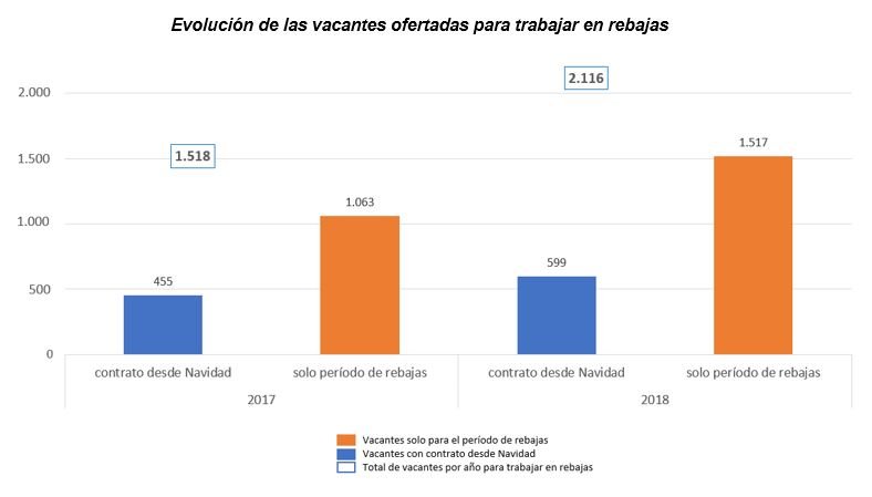 - El 28% de las vacantes recogidas son de la campaña de Navidad, cuyo contrato se extiende hasta el período de rebajas