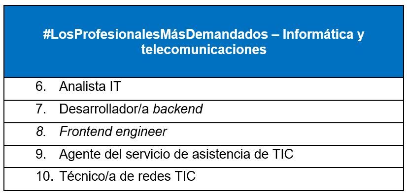 - Informática y telecomunicaciones se acerca a las 7.000 posiciones