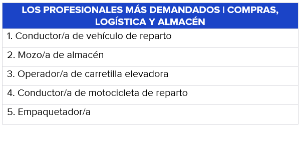 #LosProfesionalesMásDemandados: conductor/a de vehículo de reparto, mozo/a de almacén y dependiente/a, las que más suben respecto al mes pasado