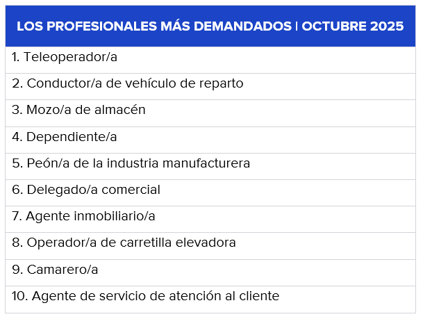 - #LosProfesionalesMásDemandados: conductor/a de vehículo de reparto (+57% vs. septiembre), mozo/a de almacén (+23%) y dependiente/a (+9,5%)
