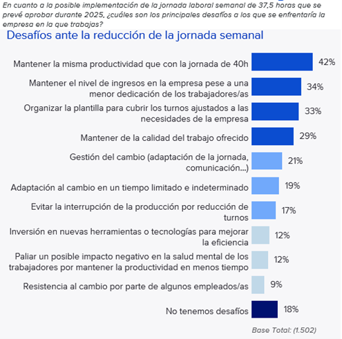 - La disminución de la productividad (42%), el principal obstáculo para la reducción de la jornada laboral