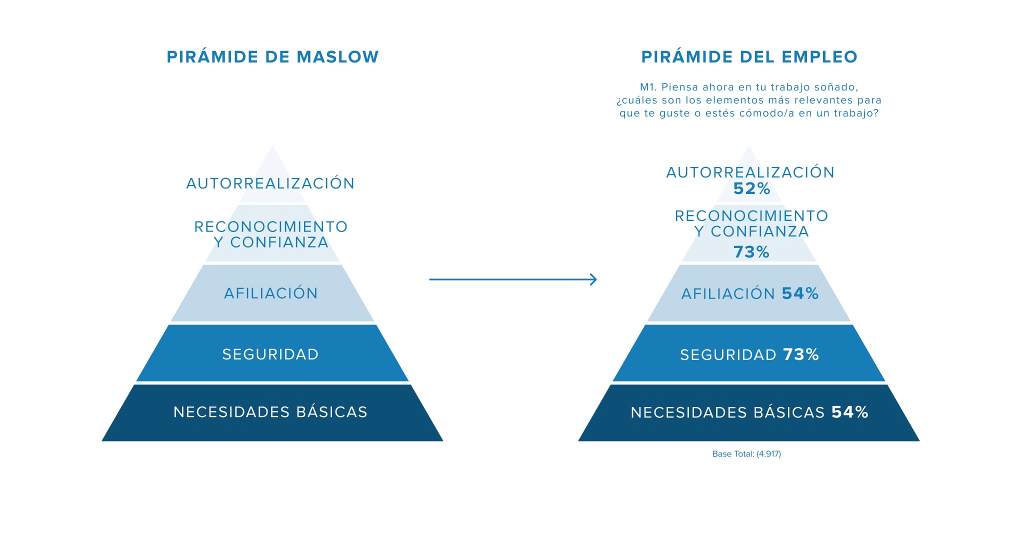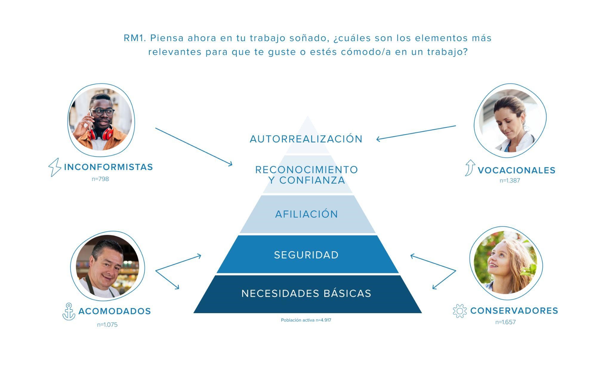 - Si imaginamos una pirámide laboral, los trabajadores con un perfil vocacional y los que tienen mayor nivel de salario son los únicos que se encuentran en lo alto y aspiran a la autorrealización