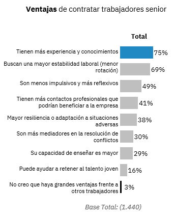 - Su mayor experiencia y conocimientos y la búsqueda de estabilidad laboral, las principales ventajas que esgrimen las compañías para la contratación de talento sénior