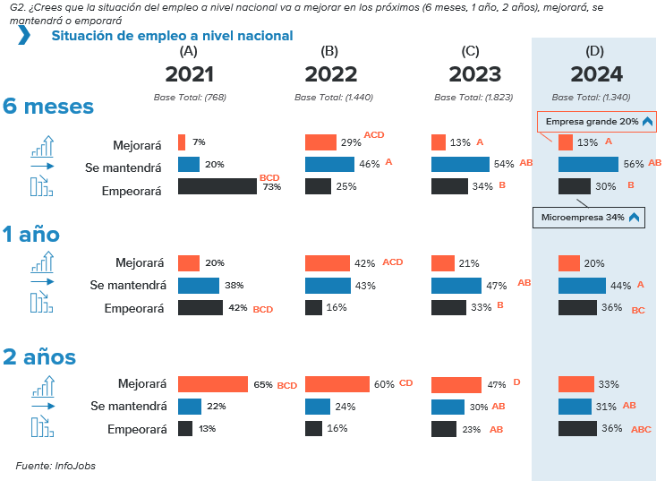 Para 2025, las perspectivas son más optimistas, dado que el 33% considera que mejorará la situación del empleo.
