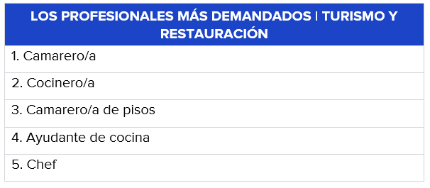 Dentro de este ranking, casi todos los perfiles mejoran su volumen de vacantes en comparación con el mes pasado. Es el caso de camarero/a (+9%) y camarero/a de pisos (+32%).