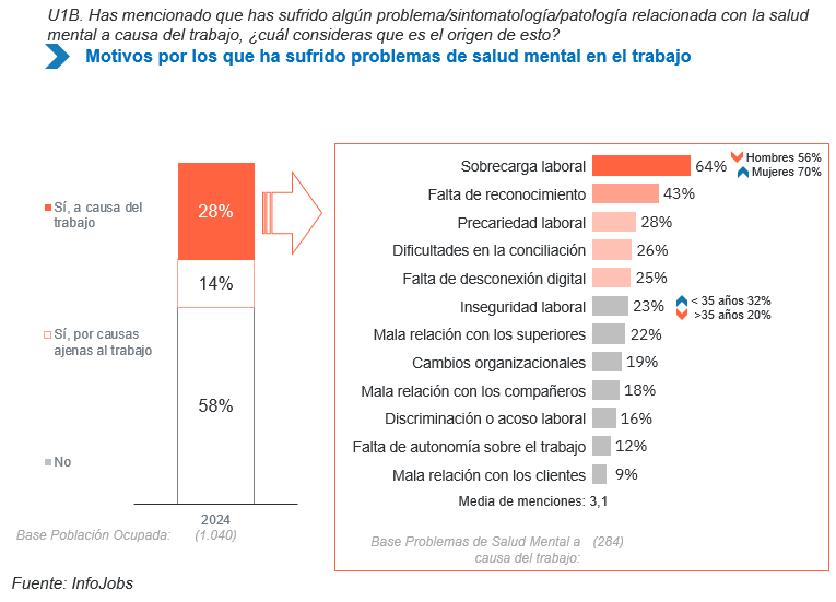 - El principal motivo de los problemas de salud mental en el ámbito profesional es la sobrecarga laboral (64%)