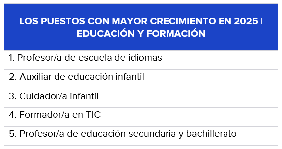 Los puestos de trabajo en educación y formación en 2025 superan las 66.800 vacantes, con la presencia de perfiles digitales