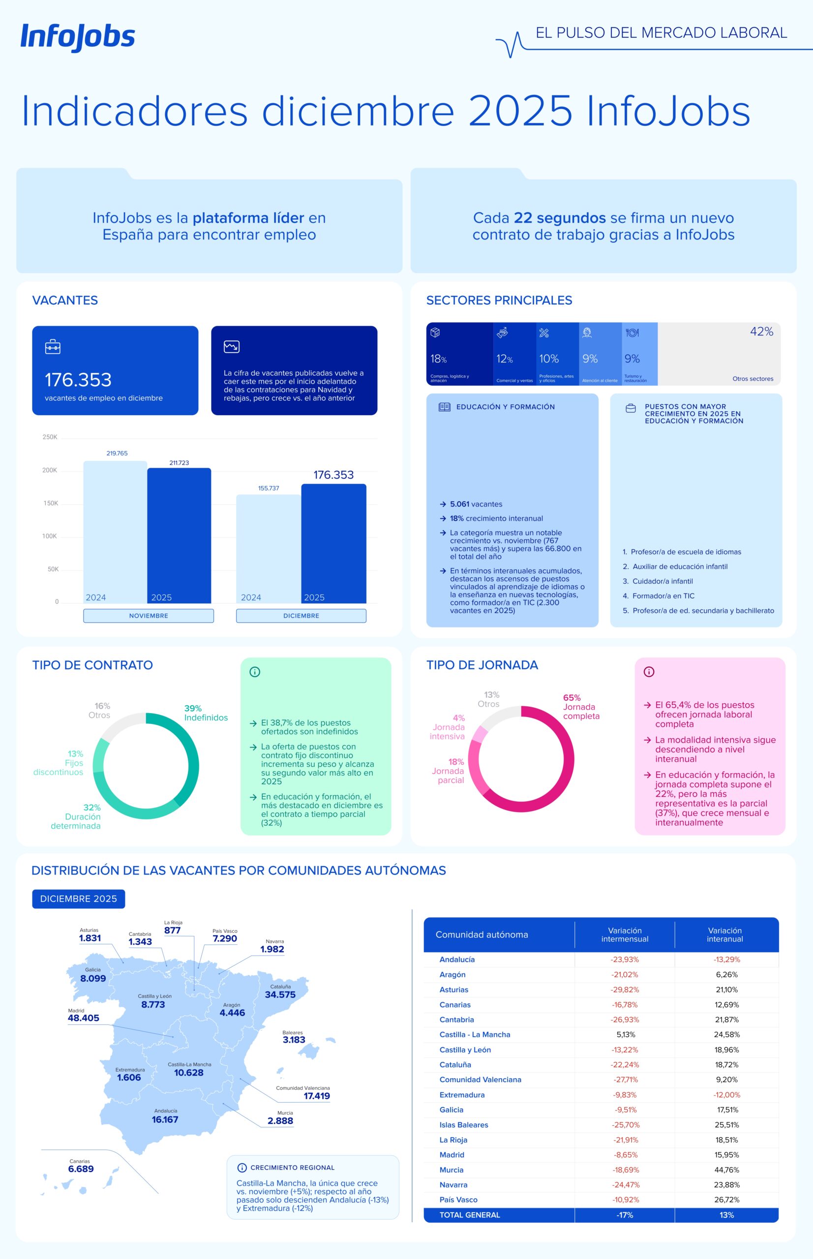 InfoJobs registra en agosto un 21,5% más de vacantes que en el mismo periodo del año pasado, y un 10% menos que en julio